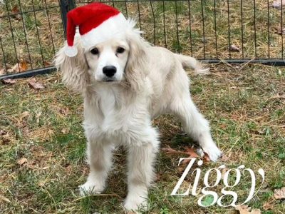 Meet Ziggy, a buff male with a playful personality  and our only smooth-coated (“smoothie”) puppy currently available. He is 4 months old, fully vaccinated, healthy, and ready for his new home. This smooth-coated, low-shedding pup is intelligent, social, and makes a wonder companion.